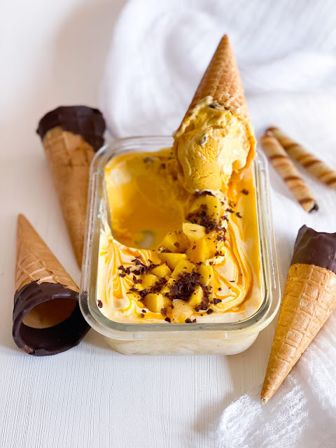 How about delicious mango ice cream. Fluffy, creamy, perfect for dessert 🍧🍦